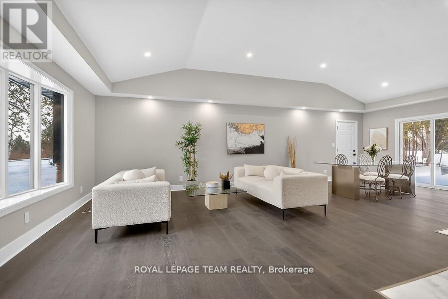 LOCATION, GOLF & LIFESTYLE. Completely renovated & elevated to a whole new level , Gorgeous vaulted ceilings & open concept this stunning 2+2 bedrooms, 3 ensuites 2 are cheaters. This beautifully renovated bungalow sits in one of the area's most coveted settings. With no front or rear neighbours, the home backs onto the first hole of the Carleton Golf Club and fronts onto a picturesque stretch of the Rideau River.Move right into this like-new home and add your own personal touches. Designed with space and comfort in mind, it offers a bright, spacious living room anchored by a striking stone wood fireplace attached to main floor is a spacious Sunroom to enjoy those summer evenings in outdoor setting. The primary suite is a true retreat with a beautiful ensuite & an impressive walk-in closet. A second main-floor bedroom features a convenient cheater bath.Enjoy the three-season sunroom, plus a large fully finished basement with a full bathroom and two additional bedrooms both featuring oversized windows & bonus family rooms. additional updates since 2015 include: R50 attic insulation, 200-amp electrical panel, air conditioning, two sump pumps with marine battery backup, & full basement foundation waterproofing.. (id:2469)